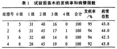 黃化的桉苗只施N、P、K,或淋清水病情會加重,黃化率由92%升到97%,病情指數(shù)由42.5升到64.3,而淋0.2%硫酸亞鐵能降低發(fā)病率,病情減輕,但配合大量元素N、P、K能更快地使苗木恢復(fù)正常生長,效果最好的是使用0.2%硫酸亞鐵加0.2%復(fù)合肥,在連續(xù)施用3次,l5天后99%的苗變綠,只有1株黃化,因病情過重?zé)o法矯治。苗木在新葉黃化時,使用處理3苗木在5天后就抽出綠稍,而老葉黃化的變綠要10天以上。 2.2對排水不良地塊黃化病防治 結(jié)果對積水的采圃進(jìn)行開溝排水后,5天后黃化苗開始轉(zhuǎn)綠,15天后,發(fā)病率由88%降到27%,病情指數(shù)由42降到8,說明通過排水改善土壤的理化性,植物能利用土壤中的鐵元素。但不同的處理恢復(fù)的效果不一樣,使用0.2%硫酸亞鐵加0.2%復(fù)合肥最好,苗木15天后能全部轉(zhuǎn)綠,只施硫酸亞鐵或復(fù)合肥均不能盡快使苗木恢復(fù)正常生長。