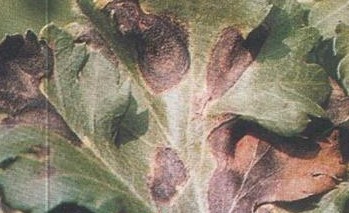【病原】Septoria chrysanthemella Sacc. 稱菊殼針孢和S.obesa Syd.稱菊粗狀殼針孢,均屬半知菌亞門真菌。菊殼針孢分生孢子器球形至亞球形,大小51—78μm,褐色或黑褐色,器壁膜質(zhì),孔口直徑12-17μm;分生孢子針狀或絲狀,無色,具3-6個(gè)隔膜,大小23-43×1.1-1.8(μm)。菊粗狀殼針孢分生孢子器直徑66-160μm,分生孢子長(zhǎng)44-108μm,較菊殼針孢大。菊殼針孢在PDA培養(yǎng)基上生長(zhǎng)緩慢,菌落黑褐色半球狀,致密。在燕麥培養(yǎng)基上生長(zhǎng)較好,菌落直徑大,培養(yǎng)63天達(dá)13mm,產(chǎn)孢也多。20-24℃產(chǎn)孢所需時(shí)間為16天,12℃及28℃分別為37天和21天;分生孢子在清水中不發(fā)芽或發(fā)芽率很低。分生孢子萌發(fā)溫限12-32℃,萌發(fā)適溫26-28℃,55℃經(jīng)10分鐘致死。分生孢子萌發(fā)需有水滴或水膜及充足的氧氣,否則即使相對(duì)濕度接近飽和也不萌發(fā)。適應(yīng)酸堿度范圍為pH3-11,其中以pH5-7最適。 【防治方法】(1)因地制宜選育和種植抗病品種。 |