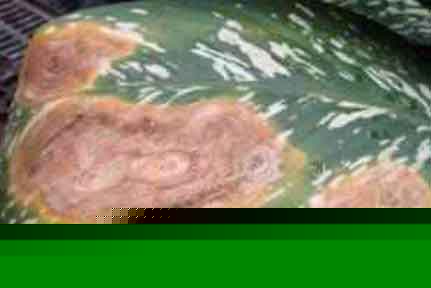 發(fā)病規(guī)律 該病多從老葉發(fā)病,室內(nèi)通風(fēng)不良、栽培管理不好易發(fā)此病。 防治方法 1、減少侵染來(lái)源:及時(shí)摘除病葉,集中銷(xiāo)毀。 2、加強(qiáng)栽培管理:注意改善園圃通透性,適當(dāng)增加光照,擺放不宜過(guò)密;發(fā)病期間,不過(guò)多地施用氮肥;加強(qiáng)對(duì)介殼蟲(chóng)的防治。 3、藥劑防治:發(fā)病前,噴施1:1:100 波爾多液,預(yù)防效果較好。發(fā)病初期,噴施69%安克錳鋅+75%百菌清可濕性粉劑(1:1)800~1000 倍液,或75%百菌清+80%代森鋅(或代森錳鋅)可濕性粉劑(1:1)800~1000 倍液,或40%多硫膠懸劑600 倍液,或25%炭特靈可濕性粉劑500 倍液,交替噴3~4 次。 |