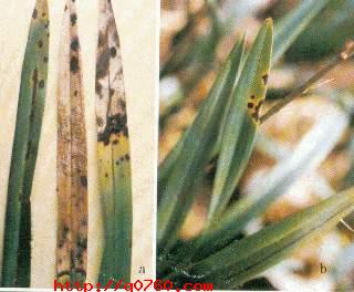 【癥狀】美人蕉葉片感病初期,正、背兩面均可出現黃色水漬狀圓形小斑,尤以葉背更明顯。以后病斑逐漸擴大,有皰狀突起,病斑橙黃色至褐色,直徑2-6毫米,有些品種邊緣出現黃綠色暈環,病斑的皰狀突起開裂散生出桔黃色粉狀物。冬天病斑上產生深褐色粉狀物即為冬孢子堆和冬孢子。嚴重受害的病葉病斑累累,并可聯結成不規則大斑塊,造成葉片局部壞死。 【發生規律】美人蕉銹病在城市道路兩旁和庭園栽植時常見發生,受害葉片黃化,變褐干枯,發病率高達50%。在廣州3-4月開始發生,除夏日高溫和冬春寒冷干燥的天氣發病較輕外,其他涼爽氣候病害都很嚴重。病菌通過風吹、水濺將夏孢子傳至健葉上,孢子萌發、侵入,反復為害。有時在病葉上出現許多灰黑褐色斑,其上生出黑色小粒點,這時黃色的銹粉卻逐漸減少,此即為銹菌的寄生菌(Darluca filum),此菌與銹菌復合為害,往往加重病情,可使病斑迅速擴大,葉片卷曲凋萎。 999苗木網,www.jin1234.com 【防治方法】(1)嚴禁帶病繁殖材料引入或輸出,病區在種植前苗木要剪去病葉和消毒。 中國苗木網,www.jin1234.com