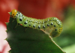 月季葉蜂(Arge pagana)又名三節葉蜂。主要為害月季、薔薇、玫瑰、黃刺玫、十姐妹等花卉。主要以幼蟲群集葉片上取食為害,嚴重時將葉肉、嫩梢吃光,殘存粗葉脈,是花卉上常見害蟲。 ![]() ??形態特征?成雌蜂體長9毫米,翅展16-20毫米,觸角3.5毫米,3節。體、翅、足藍黑色,有金屬光澤。腹部橙黃色。產卵器呈雙鐮刀狀,分上下兩瓣,鋸具12個銳利的鋸齒,不產卵時,藏匿于腹末陰溝中。雄蜂體長8毫米,翅展12.5毫米,觸角4.5毫米。 卵淡黃色,橢圓形末端稍大,長0.5毫米,孵化前為綠色。 老熟幼蟲體長20毫米,黃綠色,頭紅褐色,觸角短粗,基部淡紅色,胸、腹綠色,臀板黑色。蛹的頭胸部褐色,腹部棕黃色,繭為橢圓形,灰黃色。 發生特點? 月季葉蜂以蛹在土中結繭越冬,4月上旬羽化,發生期不整齊,世代重疊,成蟲白天羽化,次日交配。雌蟲交尾后即可產卵。卵產于木質部,外呈褐色,每處產卵1-2塊,卵期9-19天,幼蟲孵化后向嫩梢爬行,逐漸分散,共分6齡。成蟲壽命5天。 中國苗木網,www.jin1234.com ??防治方法? 1、可在冬春季挖被害株附近土中的繭,消滅越冬蟲源。 2、在幼蟲孵化末分散前進行人工捕殺。 3、幼蟲為害期,噴霧常用殺蟲劑均可。 |