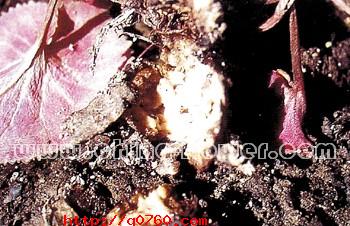 【癥狀】根和塊根被病菌侵染后變褐腐爛,地上部葉片萎蔫,下垂枯死。橫切病根、莖,木質(zhì)部呈黃褐色,并有細(xì)菌膿液溢出。 999苗木網(wǎng),999miaomu.com 【病原】為青枯病原菌Pseudomons solanacearum E.F.smith。 999中國苗木網(wǎng),www.jin1234.com 【發(fā)生規(guī)律】病菌可在病株殘?bào)w或土壤中腐生,在高溫、高濕的環(huán)境條件下則大量繁殖,遇寄主便從傷口侵入。高溫多雨季節(jié)移栽時,若土壤或肥料帶有青枯病菌,最易發(fā)病。 999中國苗木網(wǎng),www.jin1234.com 【防治方法】1、培育無病苗,避免在病區(qū)選擇繁殖材料。 |