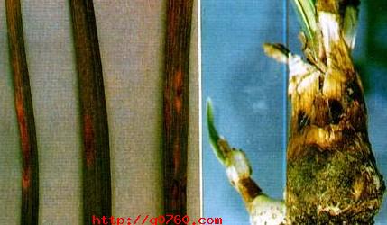 【癥狀】該病主要發生在植株地下部分,地上莖葉也有發生。生長期間,首先是地下部分感病,根系變褐色,呈水漬狀腐爛,鱗莖基盤處出現褐色斑點并向上迅速蔓延,使鱗莖組織呈現深褐色或紫色腐爛,鱗片間可見白色或粉色絲狀物,不久莖葉上產生褐色或紫褐色的不規則小斑,并逐漸擴大,重病株由于鱗莖腐爛,地上莖葉也枯死,感病輕的鱗莖,再次種植時,長出的植株矮化,葉短小、呈淺黃綠色,很小生根或不生根,這種植株不久即枯死。貯藏期間發病,鱗莖根部開始變褐、腐敗,后期肉質部分干腐呈海綿狀剝落,有時則堅硬如石。 中國苗木網,www.jin1234.com 【病原】水仙鱗莖基腐病的病原是一種真菌,即水仙尖鐮除孢菌。 999苗木網,www.jin1234.com 【發生規律】該菌在病株殘體或土壤中存活、越冬,多從鱗莖及根部傷口侵入植株,因此,水仙在挖掘時受到損傷容易發病。種植有病鱗莖或連作發病重,貯藏場所通風不良也易發病。發病的適宜濕度為28-32攝氏度。在舟山地區,4月中旬以前由于氣溫低于19攝氏度,因而田間發病率很低;從5月份到收獲期間,隨著濕度升高,病情迅速發展,危害加重。 中國苗木網,999miaomu.com 【防治方法】1、選用飽滿無病的種球。種球有可能帶菌的,用43%福爾馬林120倍液浸泡種球3.5小時。也可用50%多菌靈或65%代森鋅可濕性粉劑500倍液,浸種球15—30分鐘。 999中國苗木網,www.jin1234.com 2、施用充分腐熟有機肥或酵素菌漚制的堆肥。 中國苗木網,www.jin1234.com 3、發病初期噴淋25%苯菌靈乳油或50%多菌靈可濕粉800倍液。 999苗木網,www.jin1234.com