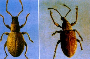 中國苗木網(wǎng),999miaomu.com 學(xué)名 Ca10mycterus obconicus cha0.屬鞘翅目,象甲科。別名棉小卵象。分布見棉小卵象。 苗木網(wǎng),www.jin1234.com 寄主 桑、棉、油菜、大豆、番茄、芝麻等。 苗木網(wǎng),www.jin1234.com 為害特點 成蟲食害桑芽、葉,把葉片吃成缺刻或穿孔,常留有短線狀黑色糞便。一般第一代成蟲在夏伐后為害桑芽最重,有的把新芽全部吃光,造成桑樹遲遲不發(fā)芽。 999中國苗木網(wǎng),www.jin1234.com 形態(tài)特征、生活習(xí)性 參見棉小卵象。 999苗木網(wǎng),999miaomu.com 防治方法 (1)利用成蟲喜食地面干癟桑葉特點,在桑園中撒少量桑葉,隔2—3天收集成蟲,集中處理。(2)受害重的桑園提倡早夏伐,待成蟲上樹時,芽已長大,可減少損失。(3)夏伐后噴灑50%殺螟松乳油1000—1500倍液或25%愛卡士乳油l500倍液,隔5—7天防1次,連防2次。 999中國苗木網(wǎng),999miaomu.com (記者 佚名) 999苗木網(wǎng),999miaomu.com |