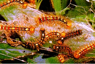 999苗木網,999miaomu.com 學名 Lymantria dispar (Linnaeus)鱗翅目,毒蛾科。別名柿毛蟲、秋千毛蟲等。分布在全國各蠶區。 999中國苗木網,999miaomu.com 寄主 桑、棟類、蘋果、梨、桃、杏、核桃、柿子、栗、榆、楊等500多種植物。 999中國苗木網,www.jin1234.com 為害特點 2齡幼蟲分散為害,白天潛藏在樹皮縫、枝杈、引棵枝內、樹下雜草及石塊下,傍晚上樹為害。幼蟲蠶食葉片,嚴重時整樹葉片被吃光。 形態特征 成蟲雌雄異型,雄體長18—20mm,翅展45—47mm,暗褐色。頭黃褐色,觸角羽狀褐色,干背側灰白色。前翅外緣色深呈帶狀,余部微帶灰白,翅面上有4—5條深褐色波狀橫線;中室中央有l黑褐圓斑,中室端橫脈上有4黑褐“<”形斑紋,外緣脈間有7—8個黑點。后翅色較淡,外緣色較濃成帶狀,橫脈紋色暗。雌體長25—28mm,翅展70一75mm,污白微黃色。觸角黑色短羽狀,前翅上的橫線與斑紋同雄相似,為暗褐色;后翅近外緣有1條褐色波狀橫線;外緣脈間有7個暗褐色點。腹部肥大7i末端密生黃褐色鱗毛。卵圓形或卵圓形,直徑0.9—1.3mm,初黃褐漸變灰褐色。幼蟲體長50一70mm,頭黃褐色,正面有“八”字形黑紋;胴部背面灰黑色,背線黃褐,腹面帶暗紅色,胸、腹足暗紅色。各體節各有6個毛瘤橫列,背面中央的1對色艷,第l一5節者藍灰色,第6—11節者紫紅色,上生棕黑色短毛。各節兩側的毛瘤上生黃白與黑色長毛l束,以前胸兩側的毛瘤長大,上生黑色長毛束。第6、7腹節背中央各有1紅色柱狀毒腺亦稱翻縮腺。蛹長19—24mm,初紅褐后變黑褐色,原幼蟲毛瘤處生有黃色短毛叢。 生活習性 年生1代,以卵塊在樹體上、石塊、梯田壁等處越冬。寄主發芽時開始孵化,初齡幼蟲日間多群棲,夜間取食,受驚擾吐絲下垂借風力傳播,故稱秋千毛蟲。2齡后分散取食,日間棲息在樹權、皮縫或樹下土石縫中,傍晚成群上樹取食。幼蟲期50一60天,6月中下旬開始陸續老熟爬到隱蔽處結薄繭化蛹,蛹期10一15天。7月成蟲大量羽化。成蟲有趨光性,雄蛾白天飛舞于冠上枝葉間,雌體大、笨重,很少飛行。常在化蛹處附近產卵,在樹上多產于枝干的陰面,卵400—500粒成塊,形狀不規則,上覆雌蛾腹末的黃褐色鱗毛,每雌產卵1—2塊,約400一1200粒。已知天敵近200種,常見的有舞毒娥黑瘤姬蜂、喜馬拉亞聚瘤姬蜂、脊腿匙宗瘤姬蜂、舞毒蛾卵平腹小蜂、梳脛飾腹寄蠅、毛蟲追寄蠅、隔離狹頰寄蠅等。 苗木網,999miaomu.com 防治方法 (1)利用幼蟲白天下樹潛伏習性在樹干基部堆磚石瓦塊,誘集2齡后幼蟲,白天捕殺。或在樹干上涂50一60cm寬的藥帶i采用高濃度殘效長的觸殺劑,毒殺幼蟲。也可在樹干直接噴灑殘效期長的高濃度觸殺劑。(2)樹上噴藥防治4齡前的幼蟲,用藥可參見棗尺蠖。 苗木網,999miaomu.com (記者 佚名) 中國苗木網,999miaomu.com