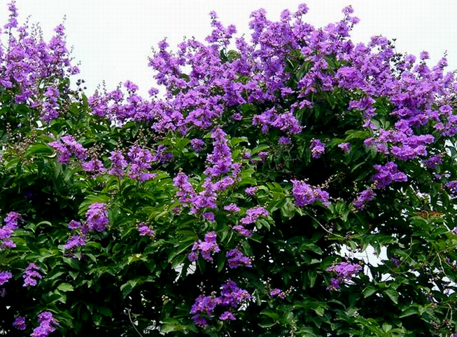 紫薇花顏色艷麗,品種繁多,花期超長,有較高的觀賞價值。在園林應用中,紫薇花是優秀的行道樹品種,也是栽植公園、綠化小區、工況廠房、道路的優秀的觀花樹木。紫薇屬共有4個種,有赤薇、銀薇、翠薇等。以藍色花瓣的翠薇最佳,為圓錐花序,著生新枝頂端,長達20厘米,每朵花6瓣,瓣多皺襞,似一輪盤。花開滿樹,艷麗如霞,故又稱滿堂紅。結果為蒴果,狀如大豆,內有種子多粒,11月成熟。