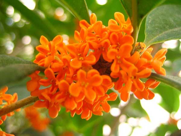 丹桂一種常綠灌木,雌雄異株,葉長橢圓形,開橘紅色花,香味很濃,是珍貴的觀賞植物。其弱陽性,喜溫暖濕潤氣候。