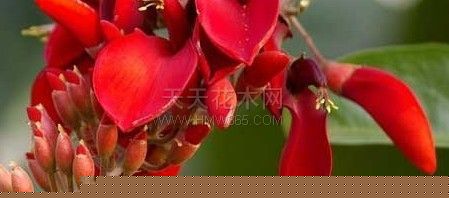 種名:雞冠刺桐 學名:Erythrina variegata L 別名:雞冠豆 英文名: 科:豆科 屬:刺桐屬 雞冠刺桐形態特征: 落葉灌木或小喬木,莖和葉柄稍具皮刺。羽狀復葉具3小葉;小葉長卵形或披針狀長橢圓形,長7-10厘米,寬3-4.5厘米,先端鈍,基部近圓形。花與葉同出,總狀花序頂生,每節有花1-3朵;花深紅色,長3-5厘米,稍下垂或與花序軸成直角;花萼鐘狀,先端二淺裂;雄蕊二體;子房有柄,具細絨毛。莢果長約15厘米,褐色,種子間縊縮;種子大,亮褐色。 雞冠刺桐分布地區: 原產南美巴西,秘魯及南亞菲律賓,印度尼西亞,我國臺灣、云南西雙版納等華南地區也有栽培。 雞冠刺桐生長習性: 喜光,也耐輕度蔭蔽,喜高溫,但具有較強的耐寒能力。適應性強,生性強健,耐旱且耐貧瘠,還能抗鹽堿。對土壤要求不嚴,但排水良好的肥沃壤土或砂質壤土生長最佳。北方盆栽時,冬季適溫應保持4℃以上。 雞冠刺桐栽培病害: 采用播種或扦插繁殖。播種繁殖,種子隨采隨播最好。播前適當浸種,直接播于苗床,苗床土以疏松的沙壤土為宜,播后覆土以蓋過種子的兩倍高度為宜,注意噴水保濕。10天左右就可出苗,1個月后待幼苗長至20厘米時進行移栽。扦插繁殖,剪去半木質化枝條,長約20--40厘米,插于沙床或疏松苗床中[1],保持濕潤,約15天即可生根發芽,1--2個月即可成苗。華南沿海地區常用長枝扦插,1--2個月后即可生根。 苗木網,999miaomu.com 雞冠刺桐園林用途: 雞冠刺桐適應性強,樹態優美,樹干蒼勁古樸,花繁且艷麗,花形獨特,花期長,具有較高的觀賞價值。在園林綠化中獨具一格,孤植,群植,列植于草坪上,道路旁,庭園中或與其他花木配植,顯得鮮艷奪目,是公園,廣場,庭院,道路綠化的優良樹種。 苗木網,999miaomu.com