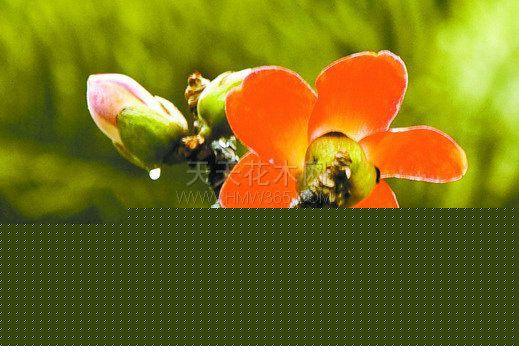 所有開花的樹看來都該是女性的,只有木棉花是男性的。 木棉樹又干又皺,不知為什么,它竟結出那么雪白柔軟的木棉,并且以一種不可思議的優美風度,緩緩地自枝頭飄落。 木棉花大得駭人,是一種耀眼的橘紅色,開的時候連一片葉子的襯托都不要,像一碗紅曲酒,斟在粗陶碗里,火烈烈地,有一種不講理的架勢,卻很美。 樹枝也許是干的狠了,根根都麻皺著,像一只曲張的手———肱是干的,臂是干的,連手肘、手腕、手指頭和手指甲都是干的———向天空討求著什么,撕抓些什么。而干到極點時,樹枝爆開了,木棉花幾乎就像是從干裂的傷口里吐出來的火焰。 木棉花常常長得極高,那年在廣州初見木棉樹,不知是不是因為自己年紀小,總覺得那是全世界最高的一種樹了,廣東人叫它英雄樹。初夏的公園里,我們疲于奔命地去接拾那些新落的木棉,也許幾丈高的樹對我們是太高了些,竟覺得每團木棉都是晴空上折翼的云。 木棉落,木棉樹的葉子便逐漸濃密起來,木棉樹終于變得平凡了,大家也都安下一顆心,至少在明春以前,在綠葉的掩覆下,它不會再暴露那種讓人焦灼的奇異的美了。 苗木網,999miaomu.com
