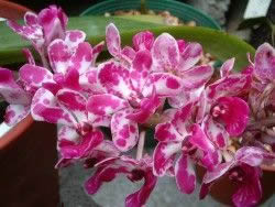 苗木網,www.jin1234.com 狐貍尾蘭並非市場上的常見蘭花,但參觀蘭花展時,卻常有機會見到栽培良好、開花數多、香味濃厚的狐貍尾蘭植株,令人留下深刻印象。 狐貍尾蘭是蘭科啄蕊蘭屬的多年生草本植物,原產於菲律賓、泰國、馬來西亞、印度等地。由於此屬蘭花的蕊柱像鳥嘴,因此被命名為Rhynchostylis,ㄧ般簡寫為Rhy.。狐貍尾蘭跟萬代蘭、仙人指甲蘭、腎藥蘭等皆屬於單莖蘭類,具氣生根,葉子細長,互生,花梗從葉腋竄出,為圓錐花序,小花具臘質,花色有藍、粉紅、紅、白、橘等。 狐貍尾蘭有許多原生種,一般較常見的有Rhy.gigantean、Rhy.retusa、Rhy.Coelestis。Rhy.gigantean的花朵較大,花序向下,花期主要為冬季,花色較豐富;Rhy.retusa花朵較小,花序向下,整體感覺較秀氣,花色為白或粉紅;Rhy.Coelestis的特點為花序直立,花期為夏天,花色為藍色。 比照其它單莖類蘭花管理,但狐貍尾蘭需要的光照較萬代蘭低,夏天需適度遮陰,以免葉片曬傷。由於其為氣根性的著生蘭類,栽培介質應以通氣性、透水性佳的為主,如蛇木屑、蛇木塊、樹皮塊等,並可用木框或網盆栽培,如果環境濕度夠,也可不用介質,直接裸根栽培。水分需充足,除了冬日低溫時不宜澆水,其餘時節皆可每日澆水。生育適溫約17-27℃,冬季若遇寒流時可移至避風處。 999中國苗木網,999miaomu.com 繁殖以組織培養或仟插為主,一般居家栽培都是以仟插繁殖,只要將長有氣生根的莖段連同頂芽一起剪下,另外種植即成一株,而原株頂芽被剪下後,又會在葉腋處分化長出側芽。施肥可以魔肥為基肥,1-2年施用ㄧ次,春秋季再以花寶2號或3號當追肥。 冬季至夏季都有不同種類的狐貍尾蘭開花,想要嚐試栽培的朋友,只要多留意一下花市,ㄧ定可以找到這極具熱帶風味、清雅與艷麗皆俱的美麗蘭花。(記者 劉英華) 中國苗木網,999miaomu.com |