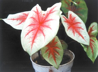 999中國苗木網,www.jin1234.com 別名:花葉芋 999苗木網,www.jin1234.com 科屬:天南星科彩葉芋屬 999苗木網,www.jin1234.com 產地:原產巴西 苗木網,999miaomu.com 形態特征: 苗木網,www.jin1234.com 花葉芋為多年常綠生草本。地下具膨大塊莖,扁球形。基生葉盾狀箭形或心形,綠色,具白、粉、深紅等色斑,佛焰苞綠色,上部綠白色,呈殼狀。 999苗木網,999miaomu.com 葉子從塊莖上長出,為卵形或,心形,色彩變化萬千。有紅脈鑲綠,紅脈綠葉,紅脈帶斑,綠脈紅斑,有的葉色純白而僅留下綠脈或紅脈,有的綠色葉面布滿油漆或水彩狀斑點。 中國苗木網,999miaomu.com 夏季是它的主要觀賞期,葉子的斑斕色彩充滿著涼意。人秋葉漸零亂,冬季葉枯黃,進入休眠期,到春末夏初又開始萌芽生長。5—9月是它的旺盛生長期。 999苗木網,www.jin1234.com 花葉芋葉形似象耳,色彩斑斕,艷麗奪目,是觀葉植物中的上品。 苗木網,www.jin1234.com 生長習性: 苗木網,999miaomu.com 喜高溫、高濕和半陰環境,不耐低溫和霜雪,要求土壤疏松、肥沃和排水良好。 苗木網,999miaomu.com 彩葉芋適溫20—30℃,夜間不低于10℃,休眠期保持10℃,不喜強光,蔭蔽度30—40%。 999中國苗木網,www.jin1234.com 它喜粘質土壤,多以粘質田土五份、腐葉土二份與砂三份混合配制而成。 999苗木網,www.jin1234.com 秋季葉黃不要拔起,扶正支撐好,給予充足的陽光、肥料,使球根肥大,直到葉全部自然枯黃,才停止澆水施肥。 中國苗木網,www.jin1234.com 到翌年春季分塊莖繁殖。自然分株是將塊莖旁的小球分離栽培,人工分株是將大塊莖切割成若干塊,每塊必須有芽眼,另行栽植。 苗木網,999miaomu.com 繁殖方法: 苗木網,999miaomu.com 以分株繁殖為主,4月將塊莖周圍的小塊莖剝下,晾干數日,直接盆栽。也可在塊莖開始抽芽長葉時,用刀切割帶芽塊莖,待切面干燥愈合后栽植。 999苗木網,999miaomu.com 彩葉芋在遮光栽培方面,依其不同品種、遮光程度而有顯著之差異。植株高度及葉片長度、寬度以遮光80%者為較大,分數則以遮光40%者為多,但品種不同稍有差異。不同塊莖切塊數及藥劑處理對植株之影響,依塊莖繁殖之切塊數、藥劑處理種類、品種等不同而有顯著差異。切塊最少者,始葉之日數短,植株較高,葉片數及分數多,葉長及葉寬較大。利用Mancozeb(80%WP)處理者產生之分數較之用Benomyl(50%WP)者為多。 999中國苗木網,999miaomu.com 用途: 999中國苗木網,999miaomu.com 除作盆栽觀賞,裝飾居室外,南方可露地在居室沿墻周圍栽植。 999中國苗木網,www.jin1234.com