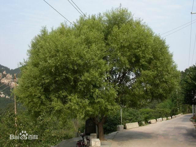 其樹高可達18米,胸徑達80厘米。大枝斜上,樹冠廣圓形;樹皮暗灰黑色,有裂溝;枝細長,直立或斜展,淺褐黃色或帶綠色,后變褐色,無毛,幼枝有毛。芽微有短柔毛。葉披針形,長5-10厘米,寬1-1.5厘米,先端長漸尖,基部窄圓形或楔形,上面綠色,無毛,有光澤,下面蒼白色或帶白色,有細腺鋸齒緣,幼葉有絲狀柔毛;葉柄短,長5-8毫米,在上面有長柔毛;托葉披針形或缺,邊緣有細腺鋸齒。花序與葉同時開放;雄花序圓柱形,長1.5-2.5 (-3)厘米,粗約6-8毫米,多少有花序梗,軸有長毛;雄蕊2,花絲基部有長毛,花藥卵形,黃色;苞片卵形,黃綠色,先端鈍,基部多少有短柔毛;腺體2;雌花序較雄花序短,長達2厘米,粗4毫米,有3-5小葉生于短花序梗上,軸有長毛;子房長橢圓形,近無柄,無毛,無花柱或很短,柱頭卵形,近圓裂;苞片同雄花;腺體2,背生和腹生。果序長達2(2.5)厘米。花期4月,果期4-5月。