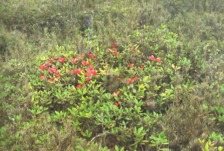 999中國苗木網,www.jin1234.com 杜鵑花科 苗木網,999miaomu.com 999中國苗木網,www.jin1234.com 999苗木網,999miaomu.com 常綠灌木,高1-3米;幼枝被絨毛。葉革質,橢圓狀長圓形或倒卵狀長圓形,長4-8厘米,寬2-3厘米,先端圓鈍,有凸尖頭,基部楔形或近圓形,下面密被灰褐色至銹色的分枝氈毛;葉柄長1-1.5厘米,初多少被毛,后變無毛。頂生傘形花序有花4-10花梗長1-3厘米,被絨毛;花萼紅色,膜質,長3-8毫米,5深裂,裂片大小不等,僅近基部有叢卷毛;花冠筒狀鐘形,深紅色,肉質,長4-5厘米,基部有5個深紫色密腺囊,裂片5或6雄蕊10不等長;子房密被白色絨毛。蒴果長1.5厘米,被銹色絨毛。 苗木網,www.jin1234.com 苗木網,www.jin1234.com 僅產云南大理點蒼山。生于海拔3200-3750米的蒼山冷杉疏林內,或高山草甸沼澤地邊緣,有時生于石山灌叢中。主要分布于亞高山冷杉林帶。分布區年平均溫約7℃,極端最高溫約25℃,冬春冷,無夏季,極端最低溫-13℃--19℃,年降水量約3200毫米,云霧多,溫度大。土壤為暗棕壤-漂灰土。由于風吹和冬季雪壓,似血杜鵑植株多呈匍匐狀。蒼山冷杉AbiesdelavayiFranch.林下,因竹鞭[密集而影響天然更新。通常4-5月開花,10月果實成熟。 中國苗木網,www.jin1234.com 中國苗木網,999miaomu.com 參考和藹杜鵑。 999中國苗木網,www.jin1234.com 漸危種。本種為我國特產的著名觀賞花木,杜鵑屬中的珍貴種質資源,對育種很有價值。 999苗木網,999miaomu.com