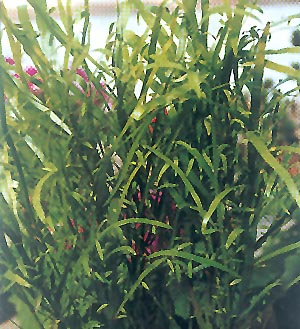 999中國苗木網(wǎng),999miaomu.com 藜科 苗木網(wǎng),999miaomu.com 999中國苗木網(wǎng),999miaomu.com 竹節(jié)蓼、扁莖蓼、百足草 苗木網(wǎng),999miaomu.com 為直立禿凈灌木,高1-3m.老莖圓柱形,有節(jié),暗褐色,上有縱線條;幼枝扁平,多節(jié),綠色,形似葉片。葉退化,全缺,或有數(shù)枚披針形小葉片,基部三角楔形,托葉退化為線條狀,總狀花序簇生在新枝的節(jié)上,淡紅色或綠白色。 999苗木網(wǎng),www.jin1234.com 苗木網(wǎng),999miaomu.com 原產(chǎn)太平洋所羅門群島。不耐寒,較耐陰,不耐濕,喜排水良好的土壤。 中國苗木網(wǎng),999miaomu.com 以扦插法繁殖,取嫩莖2-3節(jié),長10cm左右的莖段,陰處晾干至萎蔫狀態(tài)后,拔出沙或蛭石中。冬季置低溫溫室養(yǎng)護,天暖后置蔭棚。蔽蔭,通風(fēng)、空氣濕度大的環(huán)境生長良好。2-3年換一次盆。 苗木網(wǎng),999miaomu.com 株叢繁茂,嫩莖扁平,形態(tài)奇特,適于溫室盆栽。 中國苗木網(wǎng),www.jin1234.com