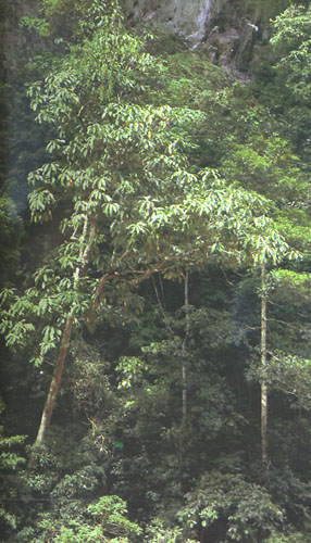 購買各種苗木,請在597苗木網發布求購信息或者需找供應商 999中國苗木網,999miaomu.com 五椏果葉木姜子|詳細介紹,597苗木網百科知識,苗木知識專家—五椏果葉木姜子介紹 五椏果葉木姜子 LitseadilleniifoliaP.Y.PaietP.H.Huang 樟科 苗木網,999miaomu.com 常綠喬木,高20-30米,樹干通直;樹皮灰色或灰褐色;小枝粗壯,具棱角,有橢圓形皮孔,無毛,髓中空;頂芽圓錐形,被灰黃色短絨毛。葉互生,革質,長圓形或倒卵狀橢圓形,長21-60厘米,寬11-15厘米,先端短漸尖或鈍圓,基部楔形或兩側稍不對稱,無毛,中脈粗壯,側脈每邊12-22斜展,上面平或微下陷,網脈在兩面明顯;葉柄較粗,長2-5厘米,無毛。傘形花序6-8排成總狀花序,總梗長約2厘米,被銹色柔毛;花被裂片8外面基部及中肋被柔毛,邊緣有睫毛;能育雄蕊16-17花絲中部以下具黃色柔毛,腺體圓心形,具短柄,花藥4室;柱頭2裂,無毛。核果扁球形,直徑2-2.3厘米,長約1.5厘米,幼稚時紫紅色;果托杯狀,緊包果實基部,深3-5毫米,直徑2厘米,外面有皺褶,較厚,全緣或波狀;果梗粗,直徑5-6毫米,長4毫米,有皺褶,被稀疏柔毛;果序總梗常有宿存苞片。 999苗木網,www.jin1234.com 五椏果葉木姜子屬于微域分布植物,僅零星分布于云南南部勐臘、勐醒、勐海、景洪、孟連、思茅和西南部滄源、耿馬等地,垂直分布幅也窄。生于海拔800米以下的溝谷密林之中。? 999苗木網,999miaomu.com 分布區位于我國西部北熱帶偏干性季節性雨林、季雨林地帶、熱量豐富,夏長無冬,年平均溫20-22℃,最冷月平均溫約15℃,極端最低溫多在5℃以上;年降雨量1200-1500毫米,主要集中在5-10月,干旱季降水量少,但多霧露,尤以11月到翌年3月為濃重,如降細雨,補充子干季雨水的缺乏;年平均相對濕度約80%溝谷中水濕條件更較優越。土壤為磚紅壤性土,強酸性,pH值4.5五椏果葉木姜子生長在以絨毛番龍眼PometiatomentosaBL.TeysmetBinn千果欖仁TerminaliamyriocarpaHuercketMuell.-A rg.為標志的溝谷雨林中,為中層喬木的罕見種。花期4-5月,果期6-7月。? 999苗木網,999miaomu.com 種子含油脂,壽命短,不易保管,應隨采隨播。并試驗育苗載培的技術。? 999苗木網,www.jin1234.com 漸危種。五椏果葉木姜子為珍稀樹種,種子含油量為34.53%含月掛酸92.6%木材細致,美觀,可作工業和家具用材。? 苗木網,www.jin1234.com