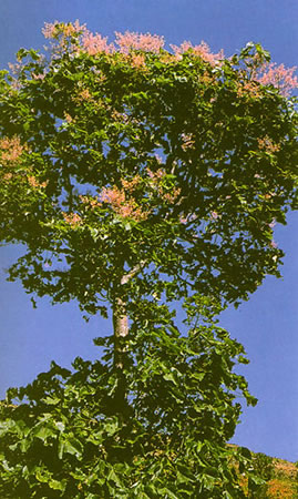 購買各種苗木,請?jiān)?97苗木網(wǎng)發(fā)布求購信息或者需找供應(yīng)商 中國苗木網(wǎng),999miaomu.com 云南梧桐|詳細(xì)介紹,597苗木網(wǎng)百科知識,苗木知識專家—云南梧桐介紹 云南梧桐 firmianamajorW.W.SMITH.Hand-Mazz 999中國苗木網(wǎng),999miaomu.com 梧桐科 999苗木網(wǎng),www.jin1234.com 999苗木網(wǎng),999miaomu.com 落葉喬木,高1518米,胸徑50厘米;樹皮青帶灰黑色;小枝粗壯,灰綠,色,嫩時(shí)被褐色短柔毛。葉掌狀35裂,長1730厘米,寬2040厘米;先端急尖,基部心形,上面幾無毛,下在密被褐色是狀毛,后逐漸脫落,基生脈57且壯,長1545厘米。圓錐花序腋生于小枝頂端,長2030厘米;花單性或雜性,紫紅色,無花瓣,萼5深裂,裂片線形或長圓狀線形,長12毫米,外面被絨毛;子房5室。蒴果長約7厘米,果皮膜質(zhì),開裂成葉狀;種子著生于葉狀果皮的內(nèi)緣,圓球形,直徑約8毫米,幼稚時(shí)黃褐色。 999苗木網(wǎng),999miaomu.com 分布云南中部至西部,目前僅在昆明、安定、大理、鄧川、鳳慶等海拔17002500米的村旁和寺廟有栽培的植株。分布區(qū)云南高原具有中亞熱帶氣候,干、濕季分明,年平均溫1315℃,1月平均溫78℃,極端最低溫不低于-5℃極端最高溫不超過32℃,年降水量1200毫米左右,相對濕度約70%,土壤為紅壤,PH值5.0-6.0.云南梧系陽性樹種,不耐陰,開花期正值雨季,花極易脫落,很少結(jié)果,即便結(jié)果,種子落地后常被松鼠等小動(dòng)物嚙食,因此天然更新較差。花期56月,果熟期10.月 中國苗木網(wǎng),999miaomu.com 999中國苗木網(wǎng),999miaomu.com 用種子繁殖。秋季采收種子后沙藏,至次早春播于苗床,約經(jīng)1個(gè)月可發(fā)芽出苗,當(dāng)年生苗高可達(dá)3050厘米,苗圃留養(yǎng)1年,才可出圃定植。 中國苗木網(wǎng),999miaomu.com 為我國特有種,野生植株幾乎絕跡。樹冠傘狀,枝葉繁,夏日蔭地,優(yōu)良行道樹和園景樹。成年大樹極為稀少,僅在昆明黑龍?zhí)豆珗@有1株,安定溪寺有8株,大理下關(guān)李公祠(即將軍廟)有2株,均系栽培,急需加強(qiáng)維護(hù),以免絕跡。 中國苗木網(wǎng),999miaomu.com 建議園林部門作為園林綠化樹種,大力推廣種植。 999苗木網(wǎng),www.jin1234.com 中國苗木網(wǎng),www.jin1234.com