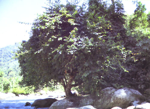購買各種苗木,請在597苗木網發布求購信息或者需找供應商 999苗木網,www.jin1234.com 萼翅藤|詳細介紹,597苗木網百科知識,苗木知識專家—萼翅藤介紹 萼翅藤 CalycopterifloribundaRoxb.Lam. 使君子科 999中國苗木網,999miaomu.com 中國苗木網,999miaomu.com 苗木網,999miaomu.com 常綠蔓生大藤木,高5-10-15米,莖的直徑5-10-20厘米;莖皮灰白色,枝纖細,密被柔毛。葉對生,革質、卵形或橢圓形,長5-12厘米,寬3-6厘米,上面主脈及側脈上被毛,下面密被鱗片及柔毛,側脈5-8-10對,連同網脈在兩面明顯;葉柄長8-12毫米,密被柔毛。總狀花序腋生或集生枝頂,形成大型聚傘狀花序;花小,苞片卵形或橢圓形,密被柔毛;花萼杯狀,5裂,裂片三角形;無花瓣;雄蕊102輪排列,5枚與萼片對生,5枚生于萼裂之間,花絲無毛;子房1室,胚珠3懸垂。假翅果被柔毛,長約8毫米,具5棱,宿存萼片5增大為翅狀,長10-14毫米,被毛。 中國苗木網,www.jin1234.com 999苗木網,www.jin1234.com 國,僅發現于云南省盈江縣那邦霸后山海拔300-650米處。緬甸、印度和新加坡也有分布。 999中國苗木網,999miaomu.com 產地氣候受印度洋暖流影響較深,具有氣溫較高,雨量豐沛.干濕季十分明顯的特征。年平均溫22.7℃,極端最低溫2℃,年降水量2856毫米,90%集中在5-9月,相對濕度82%土壤為磚紅壤,pH值4.5-5.5生于云南娑羅雙ShoreaassamicaDy林中。花期3-4月,果期6-8月。 999苗木網,999miaomu.com 用種子繁殖,也可試用扦插法繁殖。 999苗木網,www.jin1234.com 瀕危種。萼翅藤是亞洲熱帶山地的特有種。國的分布,有力地說明我國云南西部屬于熱帶北緣氣候,有一定的科研價值。葉可用作強壯藥和去毒藥,果用作興奮劑。 999中國苗木網,999miaomu.com