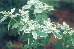 購買各種苗木,請在597苗木網發布求購信息或者需找供應商 999中國苗木網,999miaomu.com 銀邊翠|詳細介紹,597苗木網百科知識,苗木知識專家— 999中國苗木網,999miaomu.com 購買各種苗木,請在597苗木網發布求購信息或者需找供應商 苗木網,999miaomu.com 銀邊翠|詳細介紹,597苗木網百科知識,苗木知識專家—銀邊翠介紹 銀邊翠 Euphorbiamarginata 大戟科 中國苗木網,www.jin1234.com 高山積雪、象牙白 999苗木網,999miaomu.com 株高60-80cm起立分枝多。莖內具乳汁,全株具柔毛。葉卵形、長卵形或橢圓狀披針形,全緣,頂部葉輪生或對生,邊緣呈紅色或全葉白色;下部葉互生,綠色。花小具紅色瓣狀附屬物,著生于上部分枝的葉腋處。 中國苗木網,999miaomu.com 999中國苗木網,www.jin1234.com 原產北美,為一年生草本植物。喜陽光充足、氣候溫暖的環境。喜肥沃、排水良好的砂質壤土,不耐寒,耐干旱。花期7-8月。 中國苗木網,999miaomu.com 中國苗木網,999miaomu.com 直根性,宜直播。也可扦插繁殖,但應插入干土待剪口流出的汁液被吸收后再澆水。 999中國苗木網,999miaomu.com 銀邊翠頂葉呈銀白色,與下部綠葉相映,有如青山積雪,如與其他顏色的花卉配合布置,更能發揮其色彩美。為良好的花壇背景資料,還可作插花配葉。 中國苗木網,999miaomu.com 苗木網,999miaomu.com