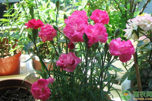3、澆水 999中國苗木網,999miaomu.com 康乃馨葉片比較肥厚,澆水時按干則澆透的原則,植株不能積水,一旦積水康乃馨就容易黃葉干花苞。。生長時期可以適當多澆,其它時候都要控水,花土濕潤就好。 苗木網,www.jin1234.com 4、光照 苗木網,www.jin1234.com 康乃馨比較喜歡冷涼的季節,在秋冬季節長勢比較旺盛,但是到了夏天就比較怕熱,一定要遮陰養護。其余季節康乃馨養護時每天給予植株6-8小時的自然光即可。 999中國苗木網,www.jin1234.com